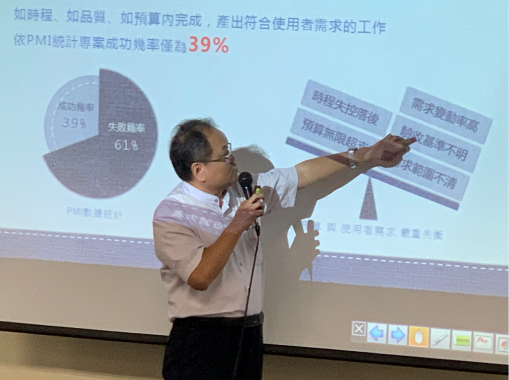 在制程管理方面,林董事長分別介紹了瀑布式和迭代式兩種軟件生命周期,昱凱控管專案方式,昱凱 CMMI標(biāo)準(zhǔn)制程,最后他總結(jié)落實(shí)每項(xiàng)專案細(xì)節(jié)才能把握結(jié)果